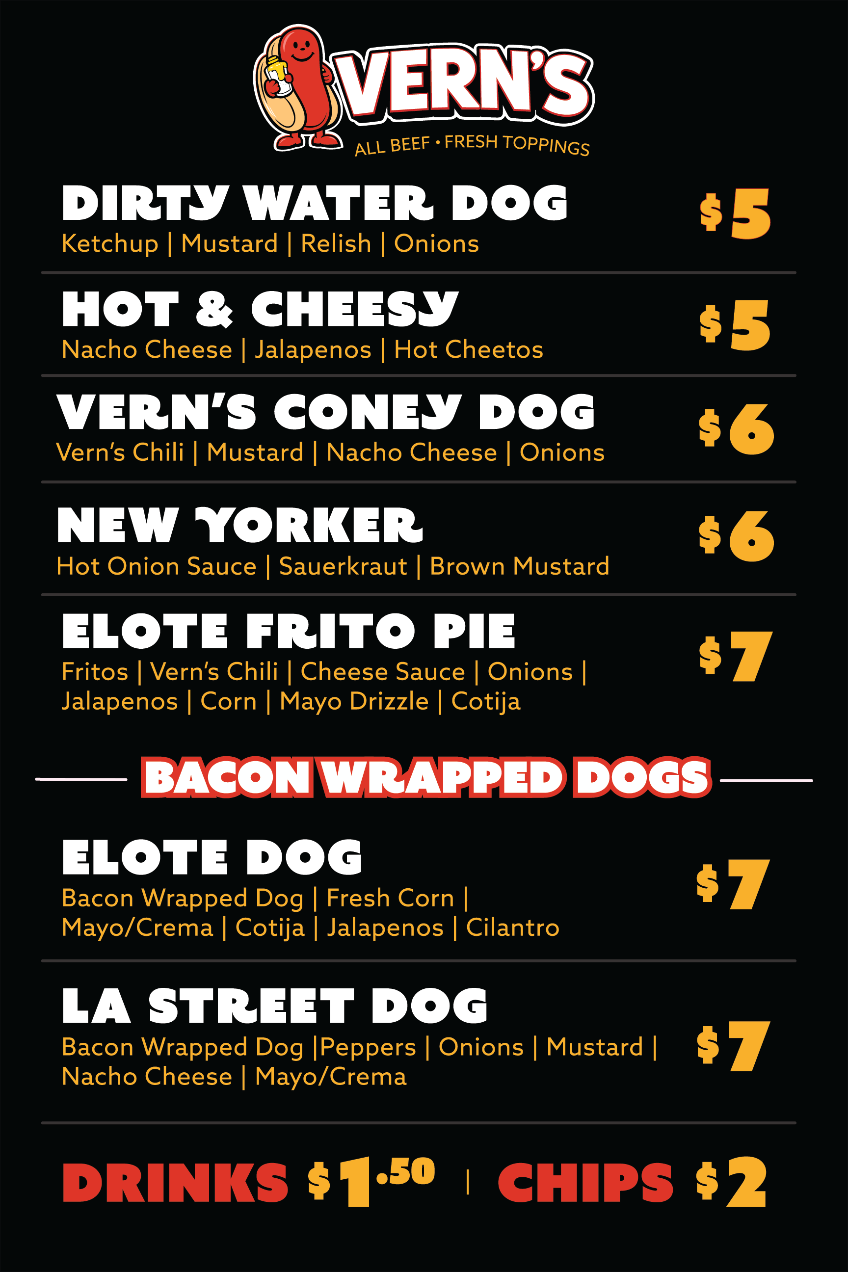 street dogs you’ll crave Book us for your office, dealership or comunity event. SEE OUR MENU Book A VERN's CART Hungry Customers Leave 〰️ Happy customers close! 〰️ Weddings 〰️ Parties 〰️ Hungry Customers Leave 〰️ Happy customers close! 〰️ Weddings 〰️ Parties 〰️ Hungry Customers Leave 〰️ Happy customers close! 〰️ Weddings 〰️ Parties 〰️ Follow Vern’s, Eat More Hot Dogs, Be Happier Contact Us